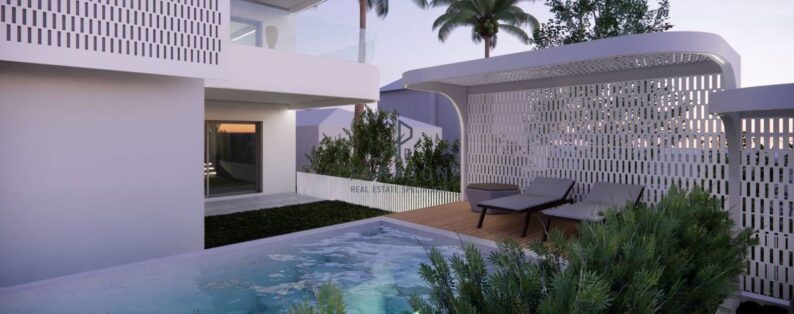 Glyfada, Golf: For sale corner apartment 136 sq.m. on the ground floor. It consists of 3 bedrooms, 1 kitchen, 1 living room and 2 bathrooms. It has a private swimming pool with a garden, storage room, underfloor independent heat pump heating, aluminum frames with double glazing, security door, indoor parking space, air conditioning, energy class A+, fireplace, screens, alarm, solar water heater and satellite dish. Price €1,350,000 | Property Code: #17716