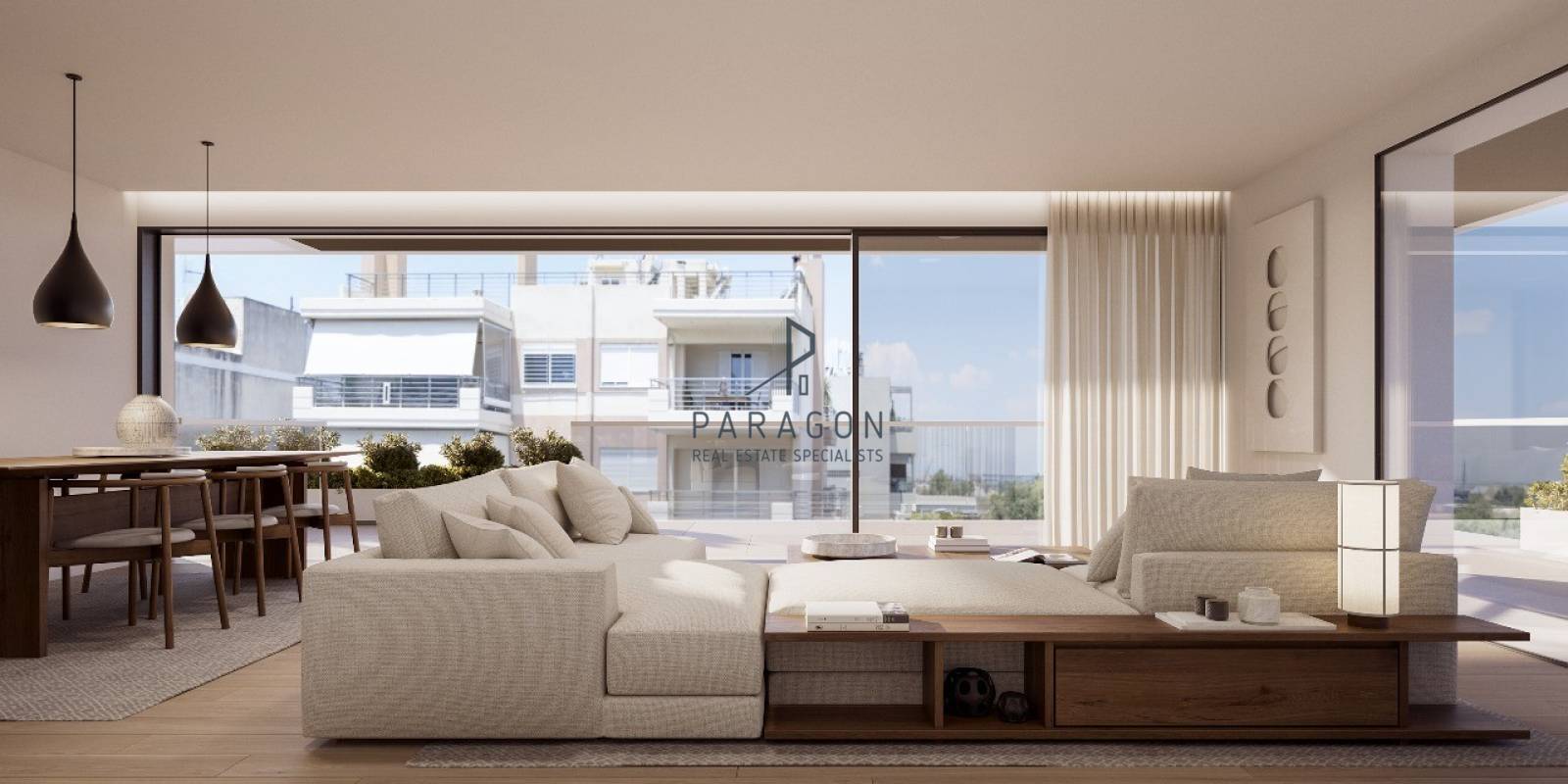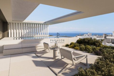 Glyfada, Golf: Newly built 145 sq.m. apartment for sale. on the 5th floor with autonomous heating. It consists of 3 master bedrooms, 1 kitchen, 1 living room, 2 bathrooms and 1 wc. It has a sea view, a 13 sq.m pool, energy class A+, underfloor heating, VRV system, smart home. Price €1,700,000 | Property Code: #10383
