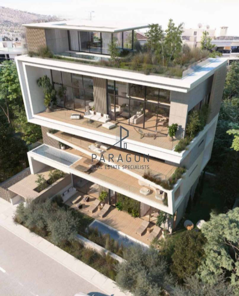 Glyfada, Kato Glyfada: Penthouse maisonette 320 sq.m. for sale. 4th, 5th and 6th floor with independent underfloor heating, heat pump. It consists of 3 bedrooms, 1 kitchen, 1 living room, storage room and 3 bathrooms. It has a sea view, roof garden 156 square meters. with swimming pool, aluminum frames with double glazing, armored door, 3 internal parking spaces, energy class A+, fireplace, alarm, solar water heater, playroom. The property has the following space layout: 4th floor: 151sq.m, 5th floor: 133sq.m. 6th floor: 35 sq.m. Price €4,100,000 | Property Code: #15450