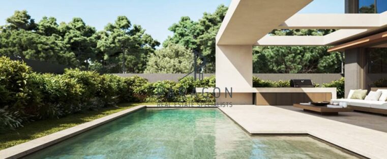 Voula, Evryali: 356 sq.m. maisonette for sale. luxury, basement facade, ground floor and 1st floor with independent heat pump heating. It consists of 4 master bedrooms, 1 kitchen, 1 living room, storage room, 4 bathrooms and 1 WC. It has a garden with swimming pool, internal elevator, aluminum frames with double glazing, security door, 3 internal parking spaces, energy class A+, fireplace, staff room with laundry room in the basement, kitchenette. The property has the following space layout: basement: 91sq.m, ground floor: 144sq.m, 1st floor: 120sq.m. Price €3,100,000 | Property Code: #15757